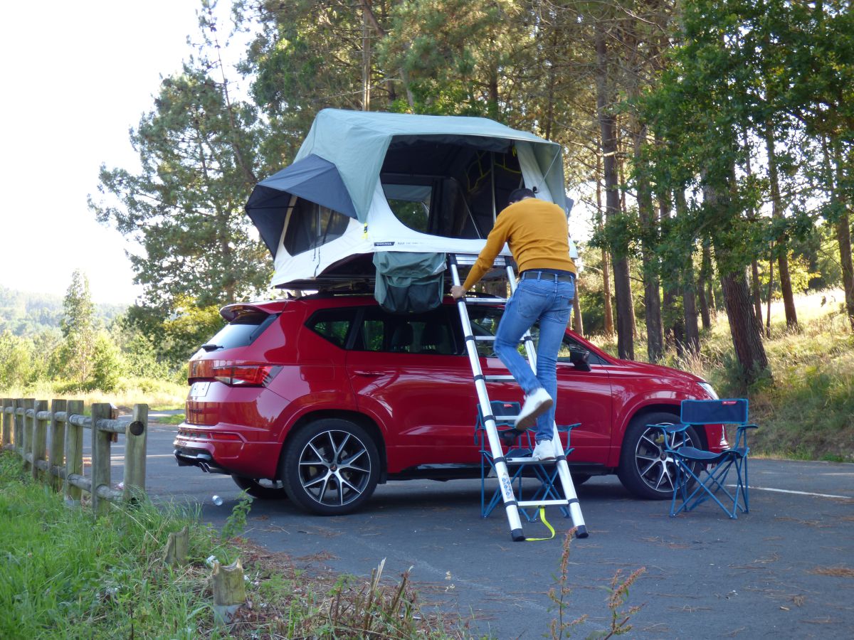 El alquiler incluye la tienda de techo equipada con un colchón, sistemas de ventilación, y mosquiteras. También ofrecemos accesorios adicionales como escaleras telescópicas, luces interiores y sábanas bajo demanda.